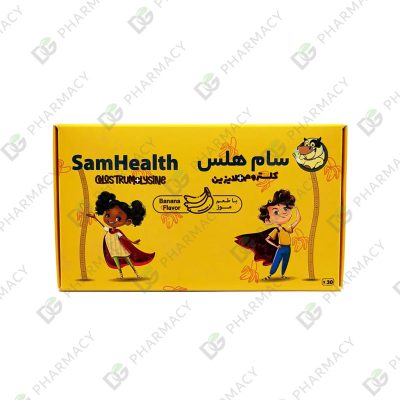 پودر سام هلس کودکان حاوی کلستروم، آمینو اسید ال-لایزین مونوهیدروکلراید حاوی 30 ساشه 2 گرمی با طعم موزی