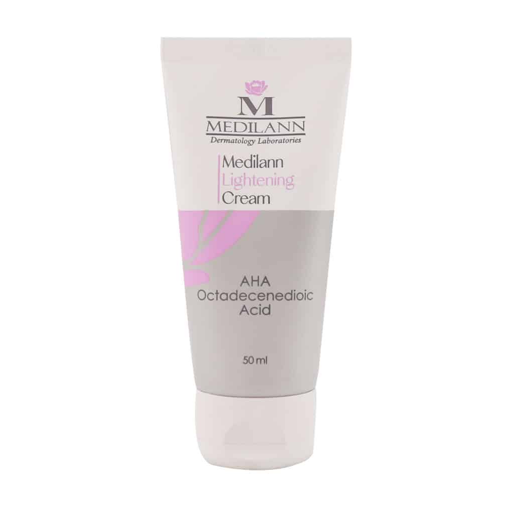 استفاده منظم از کرم مدیلن روشن کننده و مرطوب کننده به دلیل اختلال در سنتز ملانین با مهار آنزیم تیروزیناز موجب رفع تدریجی لک های پوست می شود. کرم روشن کننده اکتادسن دی اوئیک اسید مدیلن در حجم 50 میلی لیتر تولید شده و قابل استفاده روی پوست صورت و گردن است. کرم روشن کننده مدیلن aha موجب بهبود کلاژن سازی، جلوگیری از پیری زودرس و کاهش چین و چروک های پوست می شود.