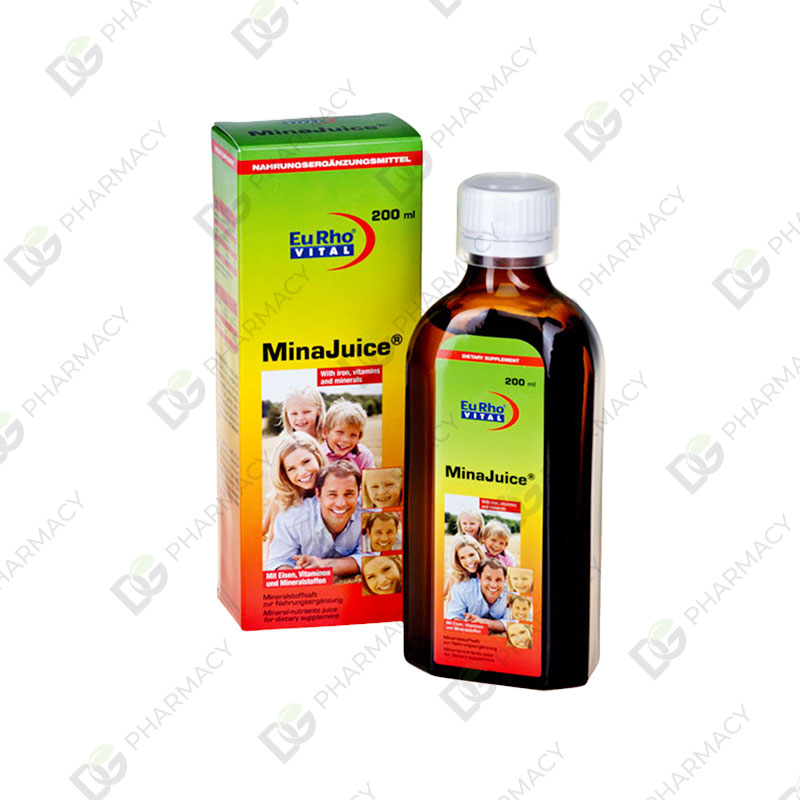 آهن موجود در شربت مینا جویس یوروویتال : بدن یك فرد بالغ سالم حدود ۴ تا ۵ گرم آهن دارد و تقریبا ۶۰ تا ۷۰ درصد این آهن در هموگلوبین یافت می شود. آهن ذخیره شده در كبد، طحال و مغز استخوان نیز ۳۰ تا ۳۵ درصد دیگر آهن موجود در بدن را تشكیل می دهد. مقادیر كمتری از آهن نیز در عضلات (میوگلوبین) و سرم خون و در تمام سلول ها بعنوان بخش تشكیل دهنده آنزیم ها موجود می باشد. آهن در بدن بصورت تركیب با سایر اجزای بدن بوده و جایگاههای عمده جذب آن معده و بخش فوقانی روده كوچك می باشد. زمانیكه كمبود آهن بروز كند و یا نیاز به خونسازی بیشتر باشد، جذب آهن نیز افزایش می یابد. آهن در كبد، طحال و موكوس روده ای ذخیره می گردد. ذخایر آهن و نیز آهن آزاد شده از تجزیه گلبول های قرمز خون جهت سنتز هموگلوبین مورد استفاده قرار می گیرند. شربت مینا جویس یوروویتال با تامین ویتامین های مورد نیاز بدن افراد، از کم خونی ناشی از سوءتغذیه پیشگیری کرده و به رشد جسمی و ذهنی در سنین رشد کمک می نماید. |