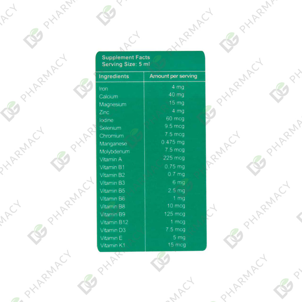 • حاوی 13 نوع ویتامین، زینک، فولیک اسید و بیوتین