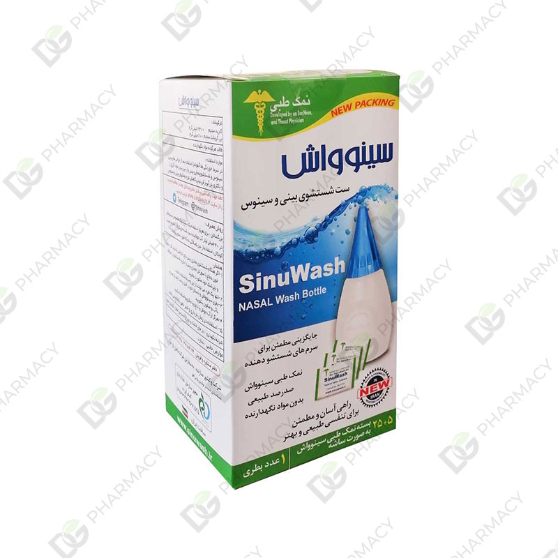 | روش مصرف | – هرگز از آب خیلی سرد یا خیلی داغ استفاده نکنید. – از آب جوش سرد شده (ولرم) که تقریبا به دمای بدن نزدیک باشد استفاده کنید. – جهت گرم کردن آب از مایکروفر استفاده نکنید. – اگر در هنگام استفاده از محلول شستشوی سینو واش در گوش خود احساس ناراحتی کردید سعی کنید آن را ماساژ دهید و اگر باز هم مشکل داشتید شستشو را متوقف کرده و با پزشک خود مشورت کنید. – بسته های نمک را در جای خشک و خنک نگهداری کنید و از بسته های پاره شده نمک استفاده نکنید. – فقط یک نفر از این بطری استفاده کند. – برای اولین بار از 1/2 بسته نمک استفاده کنید.چگونه شستشوی بینی را شروع کنیم؟ 1- درمواقع عادی یک بسته نمک طبی سنو واش را باز کرده و داخل بطری خالی کنید. 2- مقدار 240 سی سی آب آشامیدنی ولرم که قبلاً جوشیده را در بطری شستشوی سینو واش پر کنید. 3- یک لوله نی مانند در جعبه وجود دارد که آنرا محکم به داخل درب مخروطی بطری متصل کنید. 4- با انگشت خود سوراخ درب بطری را مسدود کنید و آن را خوب تکان دهید. 5- اکنون سر خود را داخل روشویی کمی خم کرده و چند بار از دهان نفس بکشید. 6- سوراخ درب بطری را درون یکی از مجراهای بینی خود قرار دهید و به آرامی بطری را فشار دهید. 7- همین عمل شست و شو را با مجرای دیگر بینی خود انجام دهید. 8- هنگام استفاده دهان خود را کمی باز نگه دارید تا محلول نمک طبی از دهان یا مجرای دیگر بینی خارج گردد. 9- بعد از پایان شستشو به آرامی در بینی خود بدمید. 10- دقت کنید مسیر بینی خود را کاملا نبندید تا هنگام دمیدن به روی پرده گوش خود فشاری وارد نشود. 11- اگر کمی از محلول باقی ماند آن را دور بریزید. 12- قبل و بعد از استفاده بطری و دستان خود را با آب و صابون کاملا تمیز کنید و آن را به صورت وارونه قرار دهید تا کاملا خشک شود. |